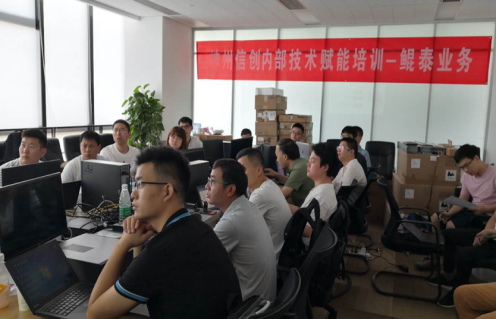 在这疫情特殊的时期,本次技术赋能培训采用了线上线下相结合的授课方式。线上录播的课程,学员们可以反复观看学习,线下的实验课程和考试地点安排在武汉平台,参加培训的学员共40名,分为两批,每批20人。培训的课程内容丰富,辅导扎实,方法灵活。虽然武汉的天气非常炎热,但是无法阻挡大家对学习尊龙凯时z6com产品知识的热情,没有一名学员请假,更没有出现迟到早退等现象。在下午6点以后,楼内的中央空调就会关闭,教室内20名学员加上样机设备的运行,室温已达到40度以上,大家仍然在教室完成实验课程。全组成员相互研讨,共同学习,共同提高。