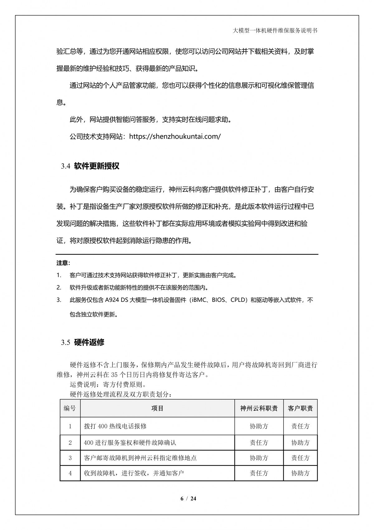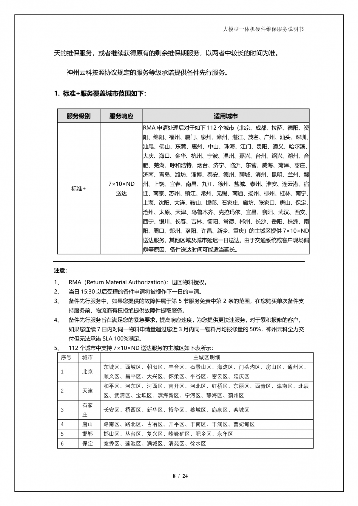 尊龙凯时z6comA924 DS大模型一体机硬件维保服务说明书_V1.1