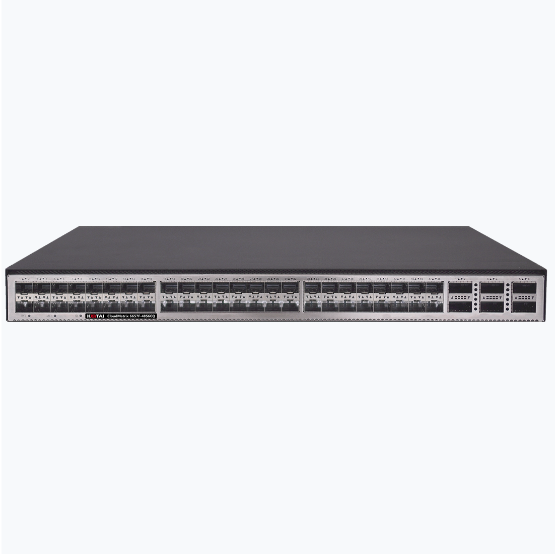 CloudMatrix 6657F-48S6CQ交换机给予 48 个 10GE SFP+接口,6 个100GE QSFP28 接 口 , 或 6 个 40GE QSFP+接口。支持前进后出或后进前出散热风道。